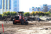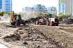На территории и за ТЦ «Европа» основная задача подрядчика ООО «Ной» в настоящий момент – сформировать сеть будущих пешеходных дорожек. Специалисты проводят планировку, устанавливают поребрики, а затем укладывают плиточное покрытие. Напомним, что работы в текущем году затрагивают лишь часть территории, которая находится ближе к улице Шумакова. В настоящее время часть пешеходных тропинок здесь уже сформирована, работы продолжаются. Кроме того, рабочие проводят подготовку для устройства освещения, обустраивая траншеи и прокладывая кабель.