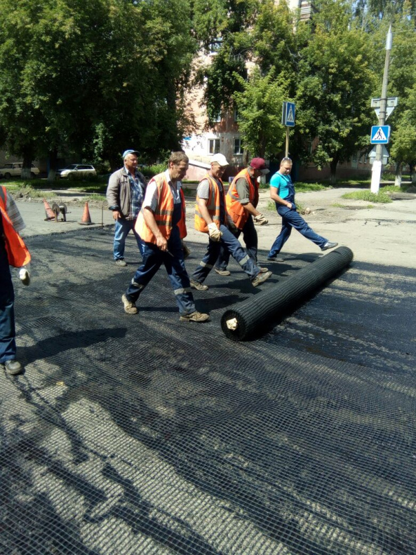 Основание дороги по улице Эмилии Алексеевой укрепляют геосеткой