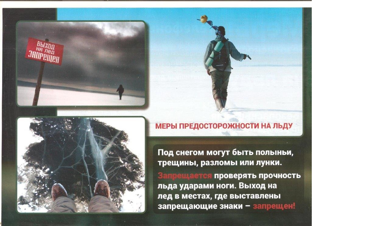 Не выходить на лед в местах, обозначенных запрещающими аншлагами.