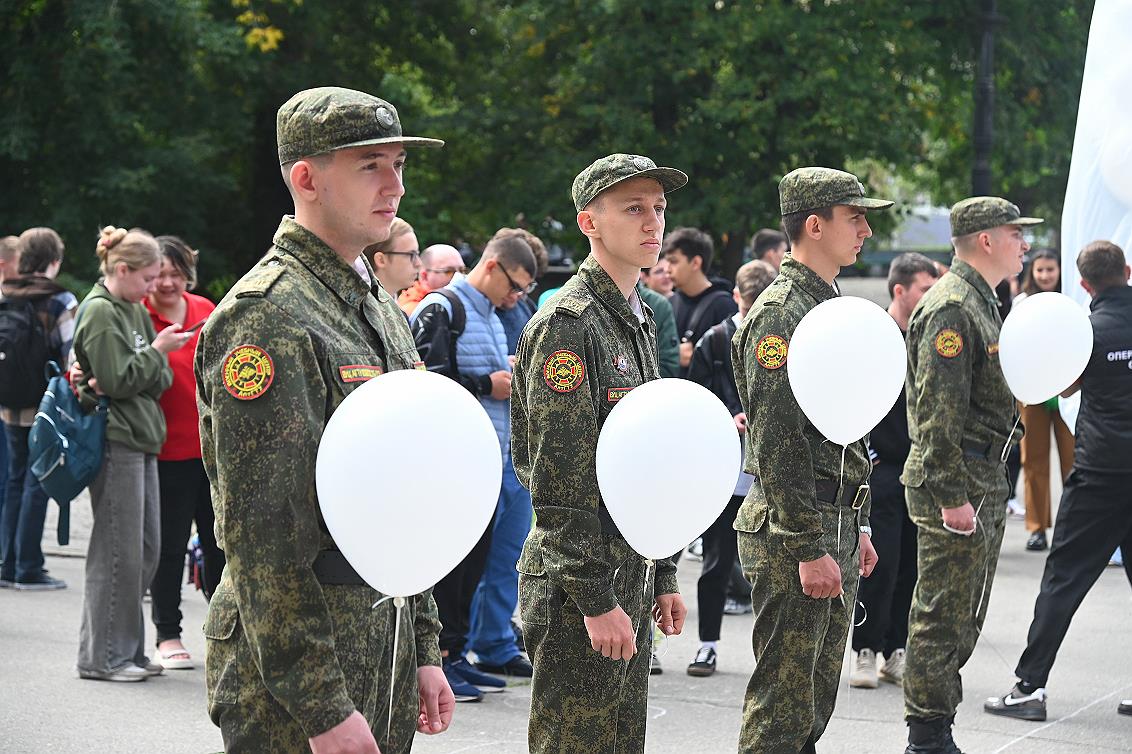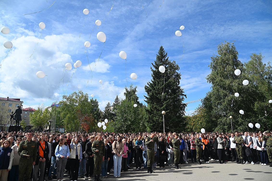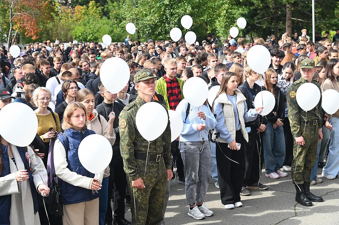 Акция, посвященная памяти жертв терроризма, объединила студентов технического, классического, педагогического университетов, Алтайского государственного института культуры, Финансового университета, курсантов Барнаульского юридического института МВД России, воспитанников казачьего кадетского класса лицея № 2.