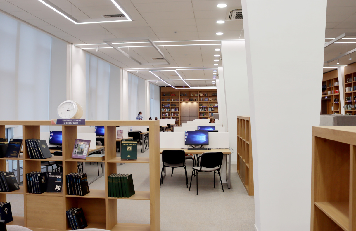 Так, обновленный единый научный читальный зал в настоящее время занимает более 500 квадратных метров. В зале около 100 посадочных мест. Он является единой точкой доступа ко всему спектру информационных ресурсов библиотеки.