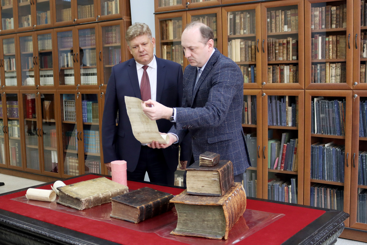 Полпред также посетил зал периодики, предназначенный для работы с периодическими изданиями, зал патентной информации, где собрано около 2-х миллионов патентных документов, отдел редких книг и рукописей.