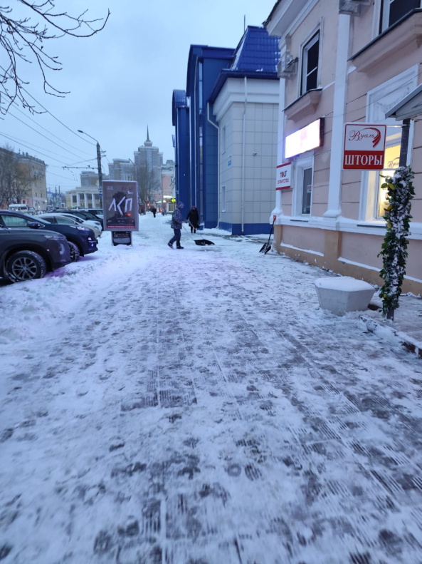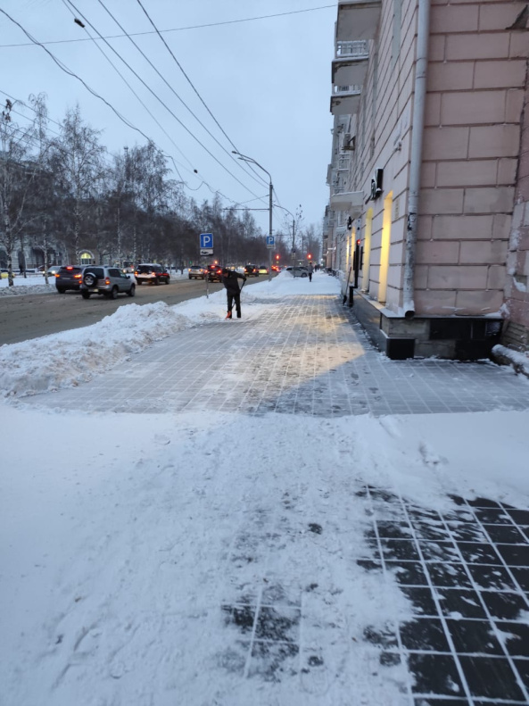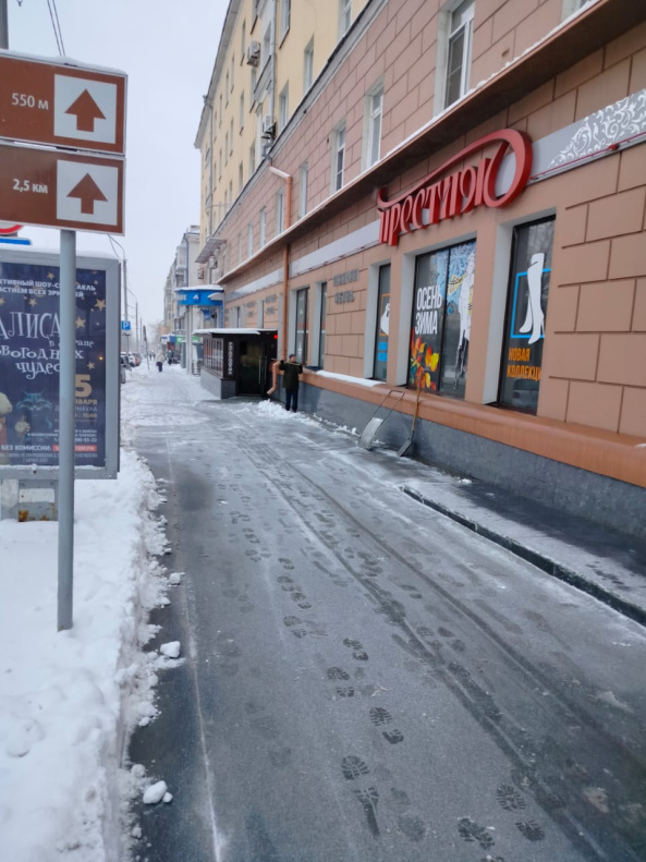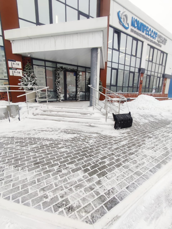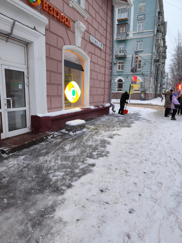 Предприятия города проводят очистку входных групп и прилегающих территорий от снега