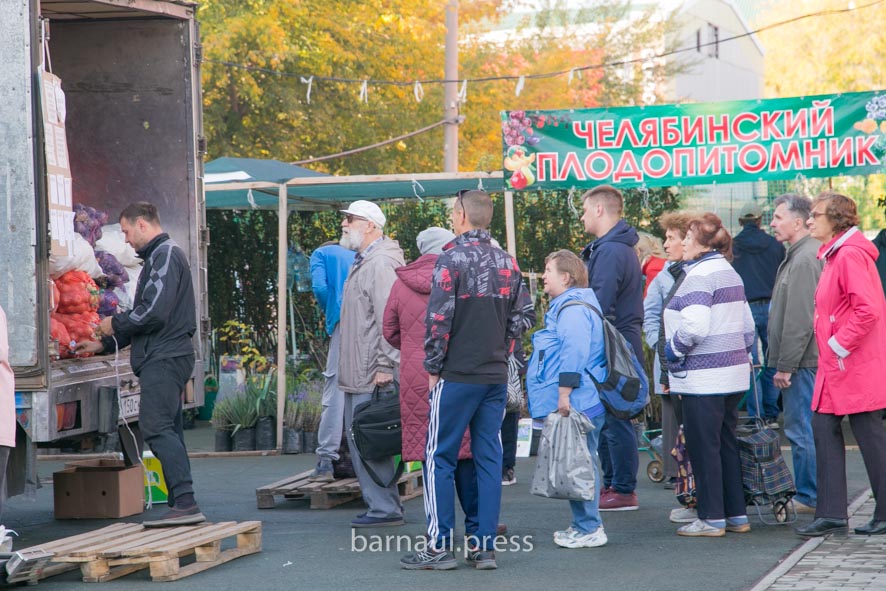 Следующая продовольственная ярмарка запланирована на 1 октября в пригородной зоне (Научный Городок, Новосиликатный, Лебяжье, Затон), и на территории города: Октябрьский район - ул.Германа Титова, 9 (сквер имени Германа Титова).Фото Михаила Полубедова, сайт газеты "Вечерний Барнаул"