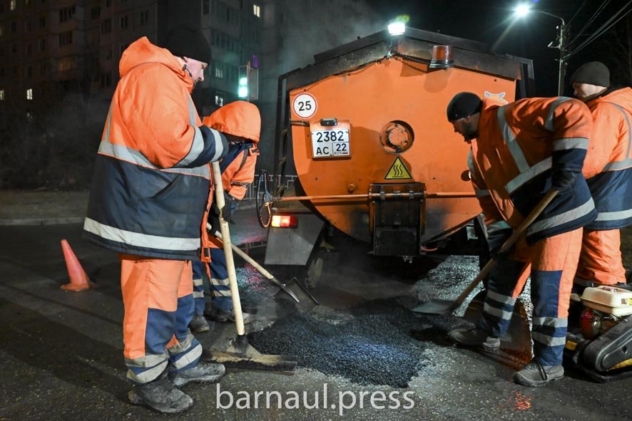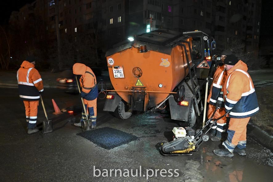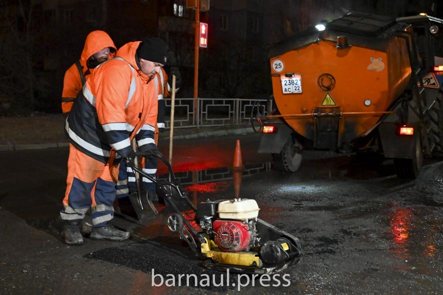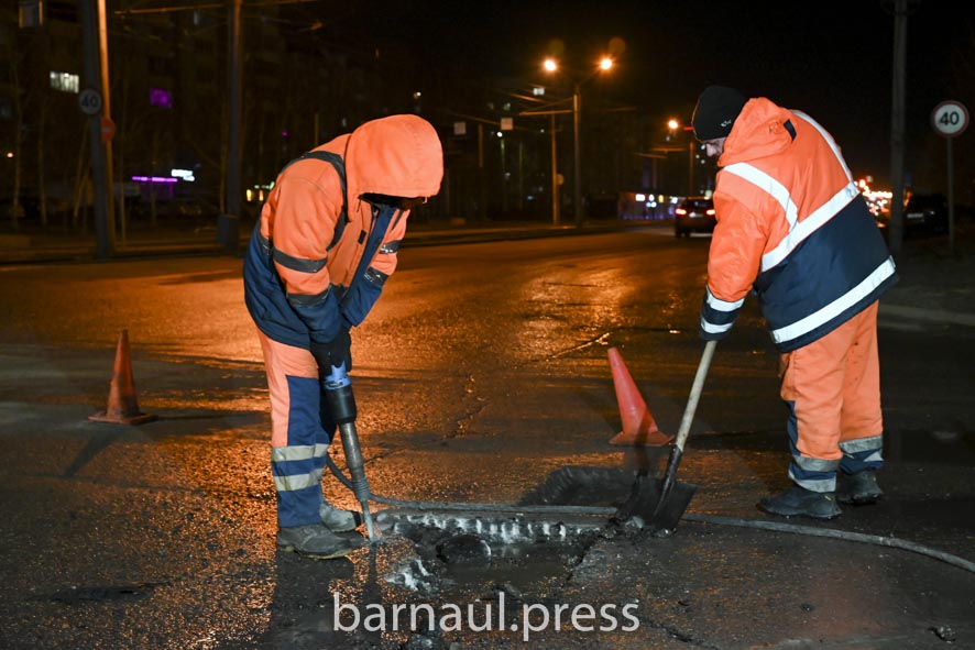 Чтобы не затруднять движение, ремонтные работы проводят преимущественно ночью. На сегодня отремонтировано порядка 615 квадратных метров участков дорог. На текущей неделе планируется отремонтировать локальный участок дороги в районе проспекта Строителей, 83, проспекта Коммунаров, 47, по ул. Власихинской от здания 144 до ул. Малахова.