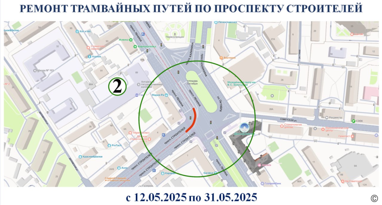 С 12 мая в Барнауле стартует ремонт трамвайных путей на площади Октября