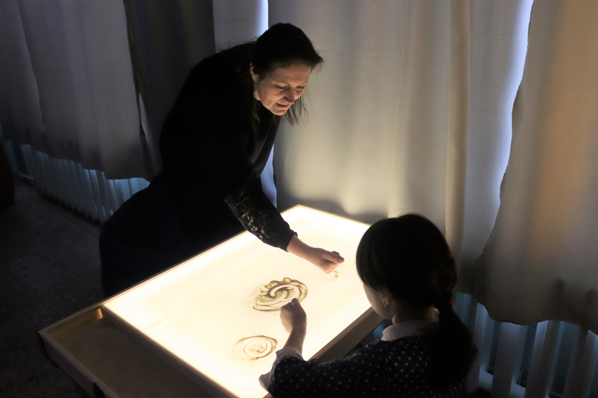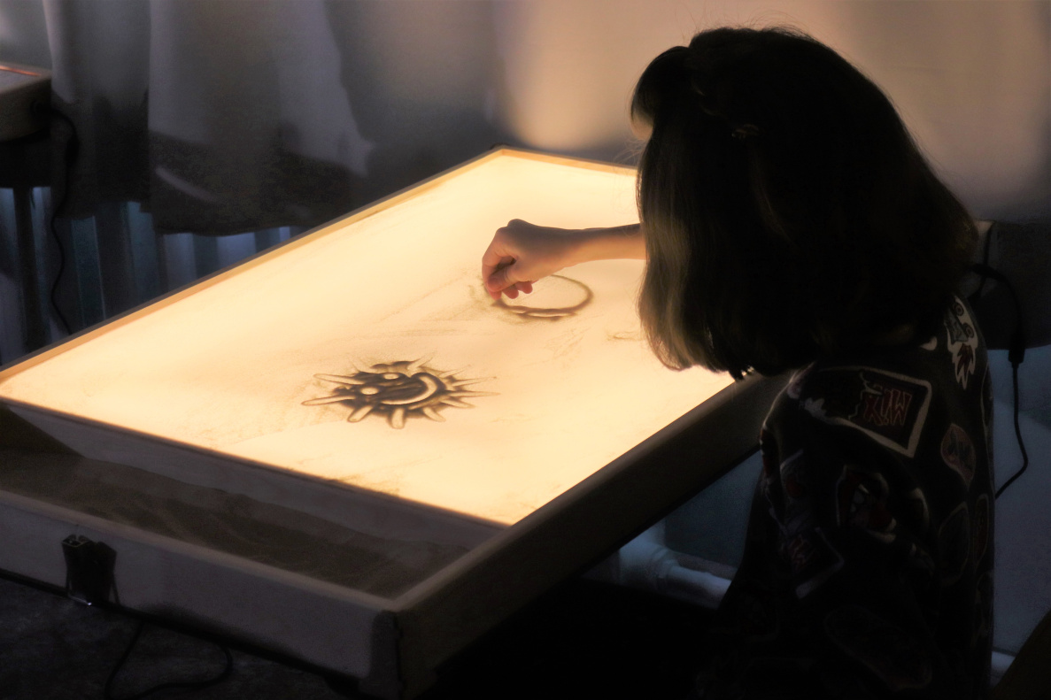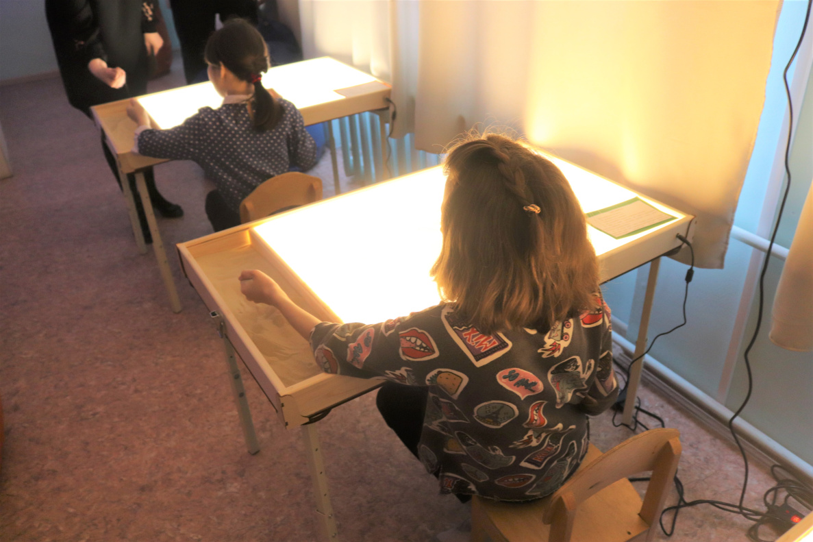 столы и планшеты для рисования песком, которые позволяют развивать мелкую моторику рук и тактильных ощущений, стимулировать мыслительные процессы и тренировать внимание.