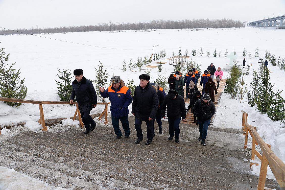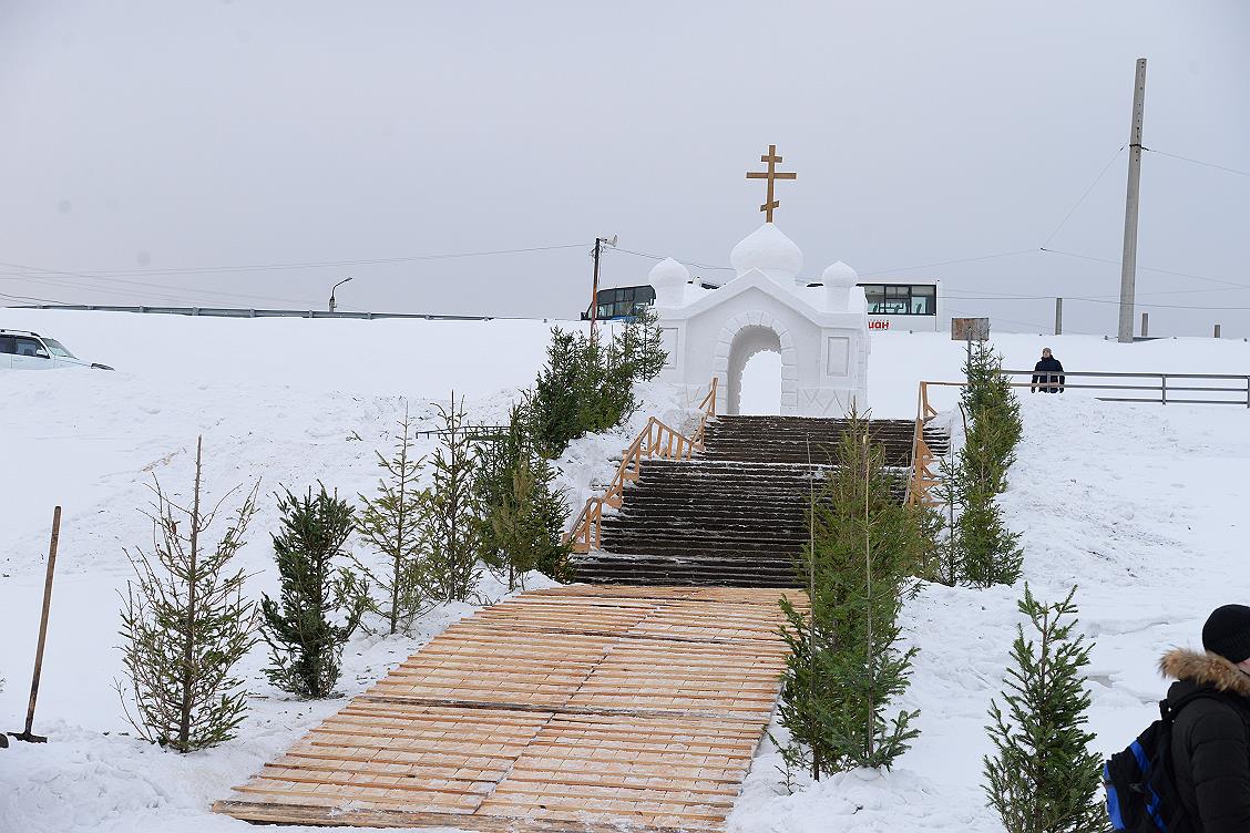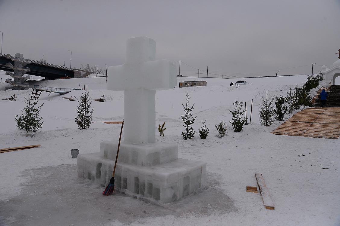 В преддверии одного из главных православных праздников глава города Сергей Дугин побывал в Крещенском городке, который в считанные дни вырос на реке Оби между Речным вокзалом и набережной. Снежная часовня, ледяной крест, иордань, купель, освещение, бани, раздевалки – практически все готово к проведению праздника. Выполняются завершающие штрихи.