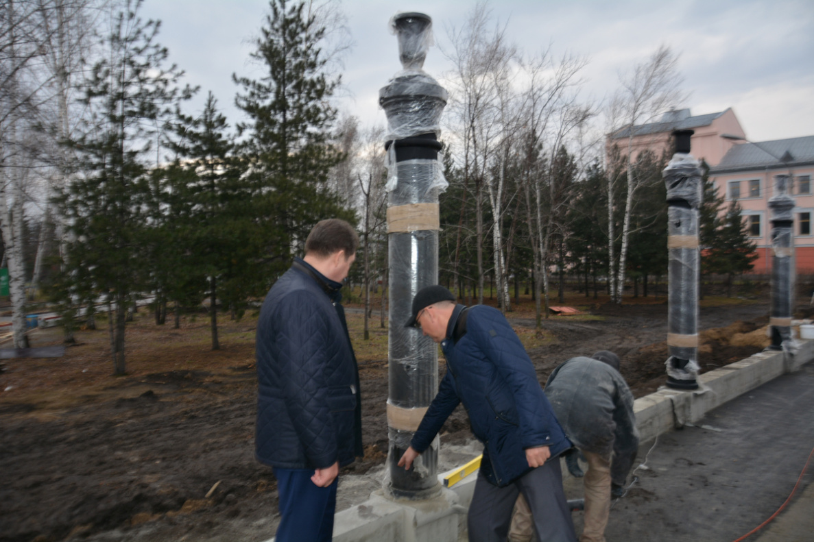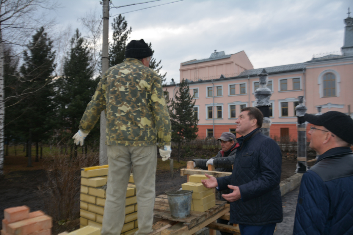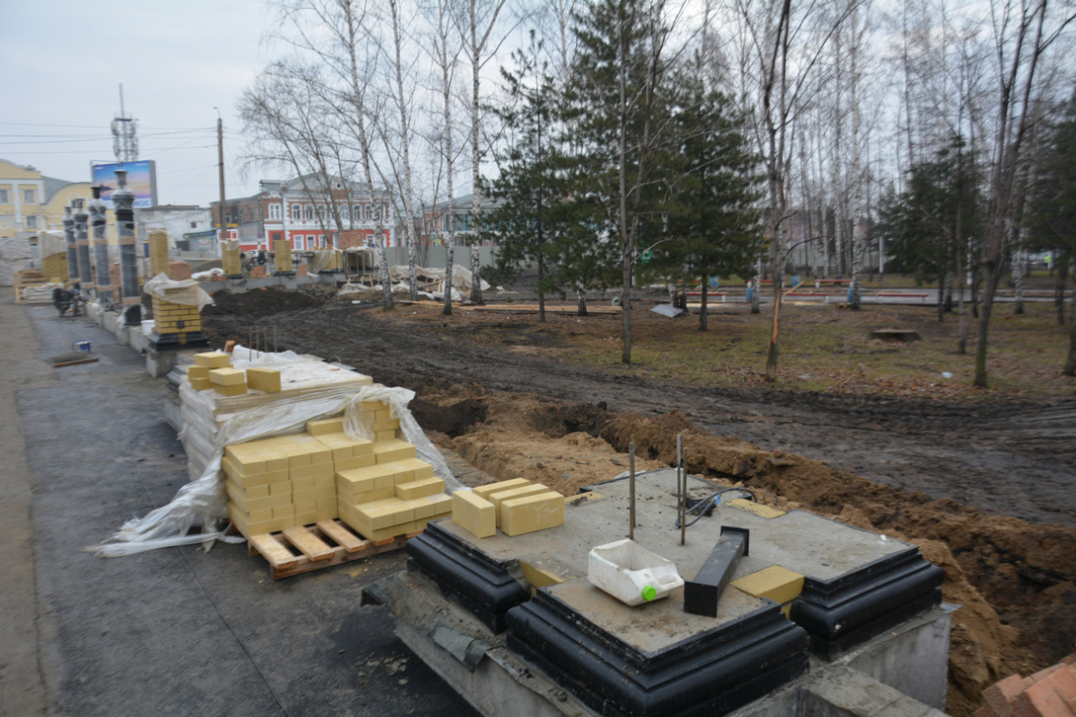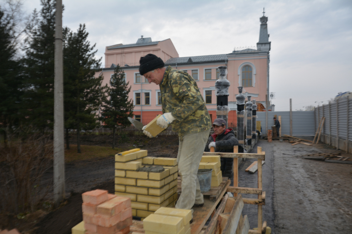 Ведется кладка кирпичных столбов. Вчера начался монтаж чугунных столбов. Конструкции ограждения, которые будут между ними, уже изготовлены на Каменском металлозаводе и в ближайшее время поступят в краевой центр.