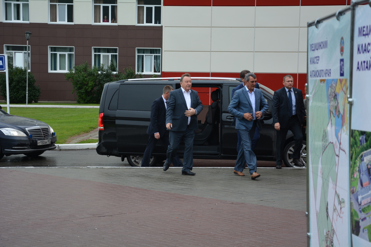 Губернатор Алтайского края Александр Карлин и Сергей Дугин продемонстрировали полпреду здание краевого онкологического центра «Надежда», корпуса краевой клинической больницы, Алтайский краевой госпиталь для ветеранов войн, Центр гемодиализа «БиБраун», строительную площадку Центра медицинской реабилитации ортопедо-травматологического профиля, новый жилой дом для работников медицинского кластера и Алтайский краевой клинический перинатальный центр «ДАР».