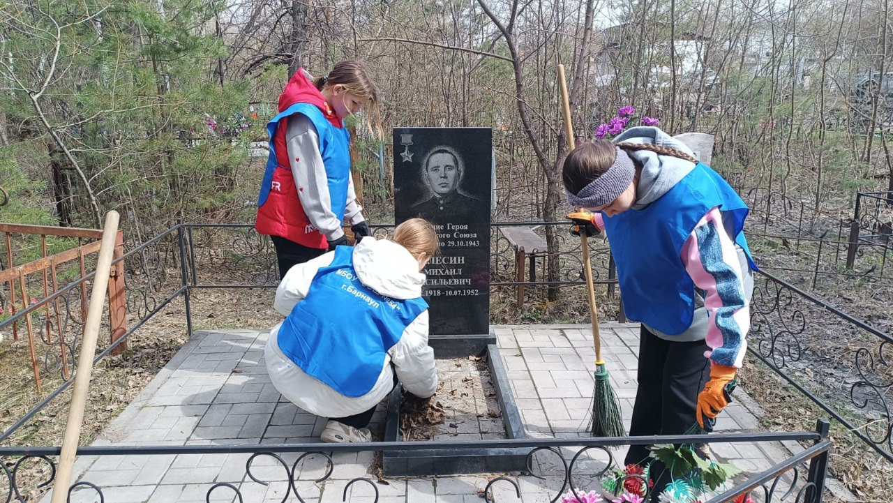 Так, активисты музея школы № 54 привели в порядок захоронения Героев и памятник умершим от ран в госпиталях города Барнаула. Кадеты лицея № 52 позаботились о бюстах Германа Титова в сквере, названном именем второго космонавта, а также Фридриха Эдмундовича Дзержинского, расположенного на территории образовательной организации. Учащиеся школы № 93 очистили памятник Герою Советского Союза Елизаветы Чайкиной. Ребята из школы № 103 – памятник Герою Советского Союза Зое Космодемьянской.