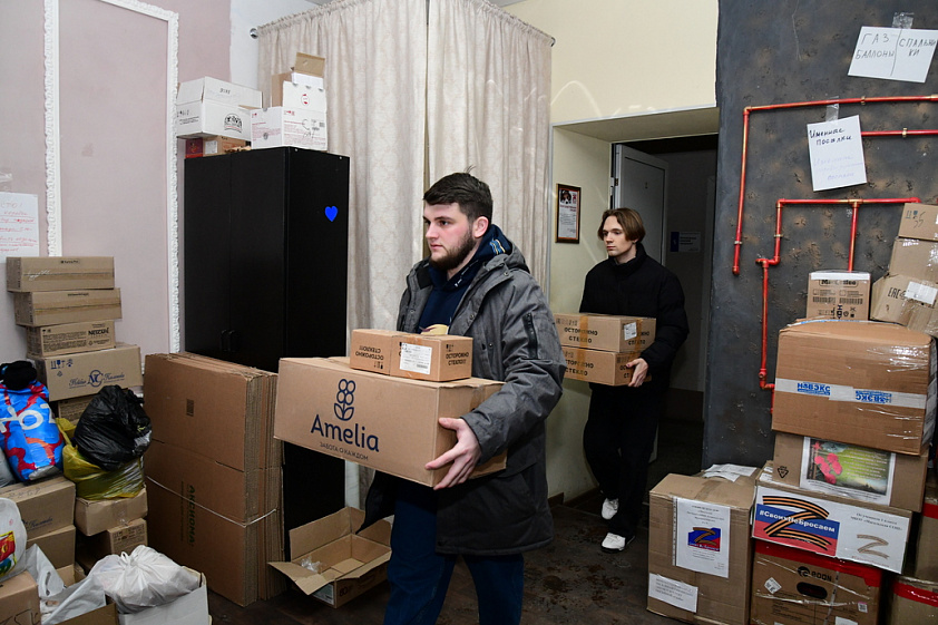 7 февраля в формировании посылок участвовали бойцы межвузовского педагогического отряда «Аврора». Ребята собирали коробки, раскладывали в них принесённые горожанами подарки, аккуратно упаковывали посылки с наклейками «Совет женщин Барнаула».«Для нас Барнаул давно стал второй родиной, — отметили представители диаспоры. — Сегодня привезли 36 спальников, сто пар сапог, футболки, продукты. Будем собирать следующую помощь ближе к 9 Мая, мотивировать нас на благие дела не нужно», — сказали они.