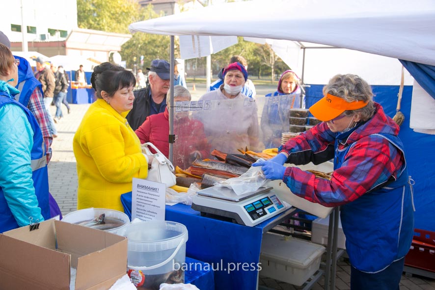 На завершающей сезон ярмарке барнаульцы купили продукции на 9,2 млн рублей. Обычно в первые осенние месяцы горожане запасаются овощами. Только картофеля в сентябре-октябре продано 620 тонн, что почти наполовину больше, чем в прошлом году (2021 год — 405 тонн). Затем акценты смещаются на мясо и рыбу. На минувшей неделе самым популярным товаром были колбасы и деликатесы — их приобрели на 1,8 млн рублей, на втором и третьем местах — мясо и полуфабрикаты (1,7 млн рублей), а также рыба (1,6 млн рублей).— Я обычно хожу на ярмарки за рыбой, такого ассортимента и качества не встретишь ни в одном магазине, а сегодня ещё ягоды замороженной для дочери купила, — рассказала Светлана Карпенко, ожидающая своей очереди за рыбой на ярмарке на площади Маршала Жукова. — Правда, приходить надо пораньше, чтобы в очереди не стоять и успеть выбрать самое лучшее.