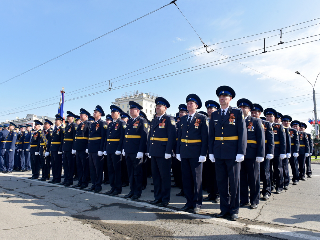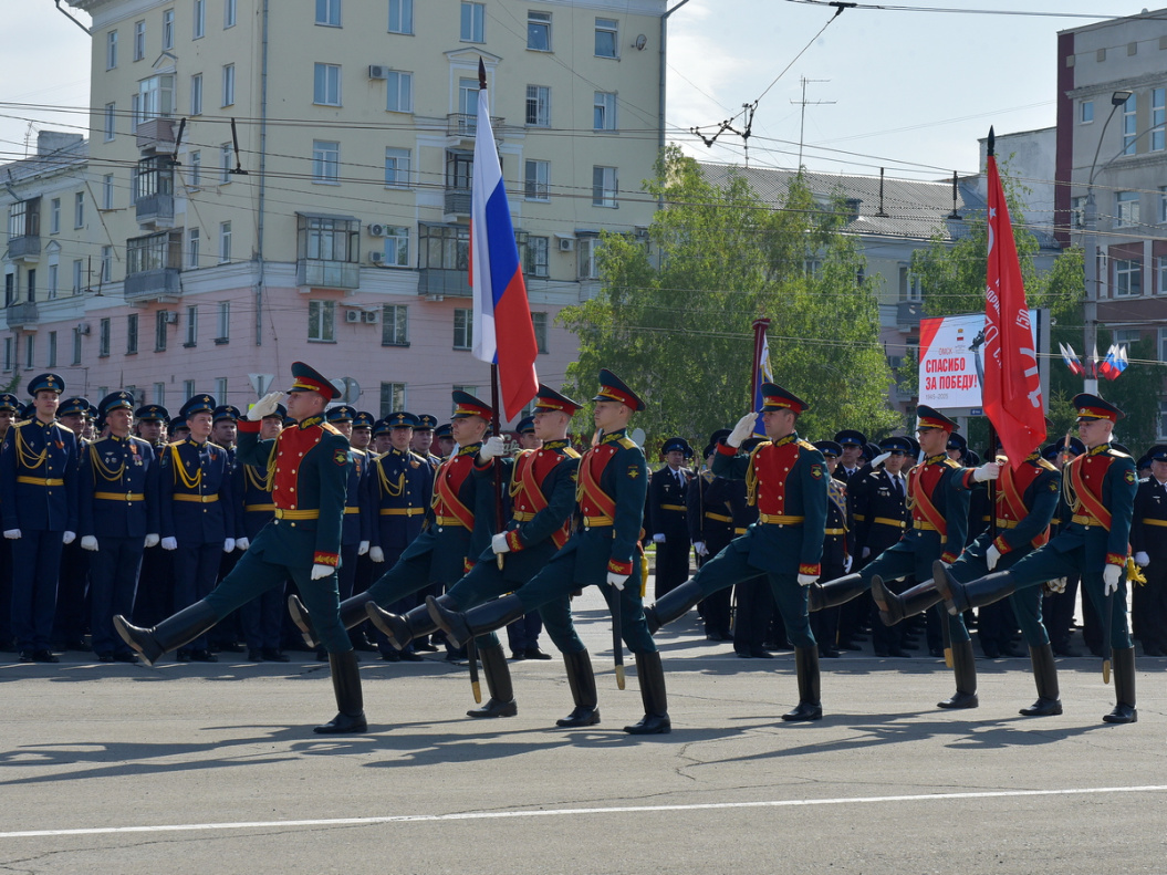 На центральную площадь краевой столицы торжественно внесли государственный флаг Российской Федерации и копию знамени Победы над фашистской Германией. В знаменной группе офицеры и курсанты Барнаульского юридического института МВД России, входящие в состав взвода почетного караула. Офицеры и курсанты знаменной группы удостоились чести нести Государственный флаг Российской Федерации и Знамя Победы за добросовестное исполнение служебных обязанностей.