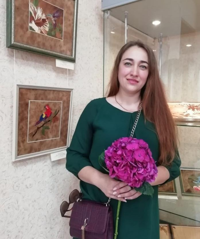 Юлия Наумова с 2010 года работает в Барнаульской детской школе искусств №1 преподавателем декоративно-прикладного искусства, ландшафтного проектирования и компьютерной графики. Техникой маркетри занимается 10 лет. В работах мастера сочетаются традиции мозаики из шпона дерева, владение материалом, техника набора рисунка и творческая индивидуальность. Работы учеников Юлии Владимировны отмечены дипломами лауреата краевых, всероссийских, международных конкурсов.