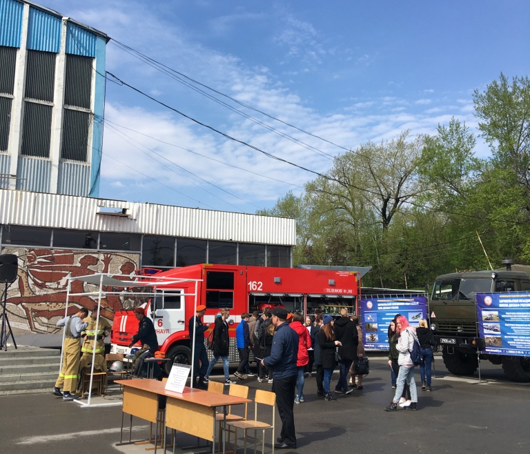 Перед Дворцом спорта работала площадка «В центре внимания ребенок»: в мобильном передвижном комплексе «Академия дорожной безопасности» Государственной инспекции безопасности дорожного движения школьникам рассказывали о правилах поведения на дороге. А буквально в нескольких метрах отсюда сотрудники МЧС в форме и в окружении пожарной техники и специального оборудования знакомили интересующихся школьников с устройством пожарной машины, а всем желающим (и взрослым и школьникам) предлагали примерить костюм огнеборца. Всего в этот день на данной площадке побывали около 500 школьников разных возрастов
