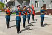 В честь наступающего праздника во дворах у ветеранов прошли показательные выступления взвода почетного караула Барнаульского юридического института МВД России, а также прозвучали песни военных лет в исполнении солистки ансамбля Барнаульского юридического института МВД России «Виват».