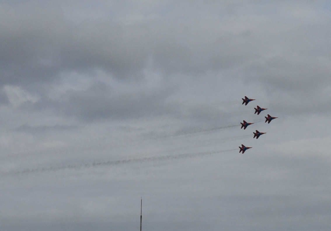 Одно из главных мероприятий, запланированных в честь празднования 290-летия города Барнаула – выступление знаменитой пилотажной группы "Стрижи" - прошло над набережной Оби.