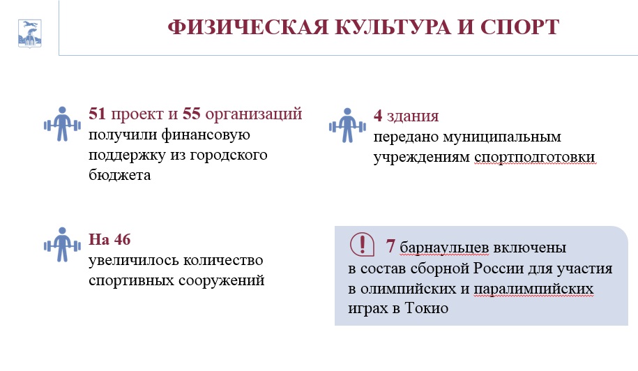 По словам Вячеслава Франка, результатом деятельности спортивных организаций города является включение в состав сборной России для участия в олимпийских и паралимпийских играх в Токио семи барнаульских спортсменов.