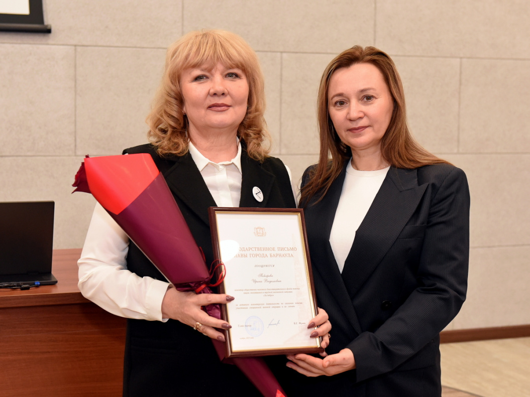 В администрации Барнаула прошла торжественная церемония вручения наград и поощрений семьям участников специальной военной операции, волонтерам и организациям, которые вносят существенный вклад в поддержку наших земляков-военнослужащих, находящихся в зоне СВО.