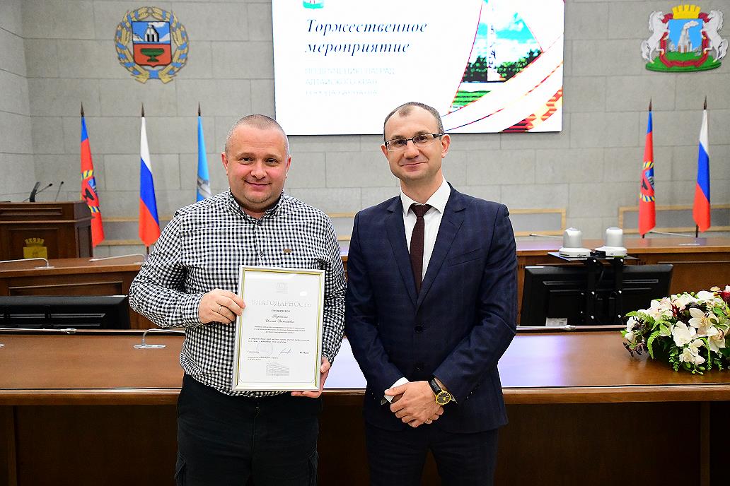 В администрации города Барнаула состоялось торжественное мероприятие, где работников дорожного хозяйства, автомобильного и городского пассажирского транспорта отметили заслуженными наградами.