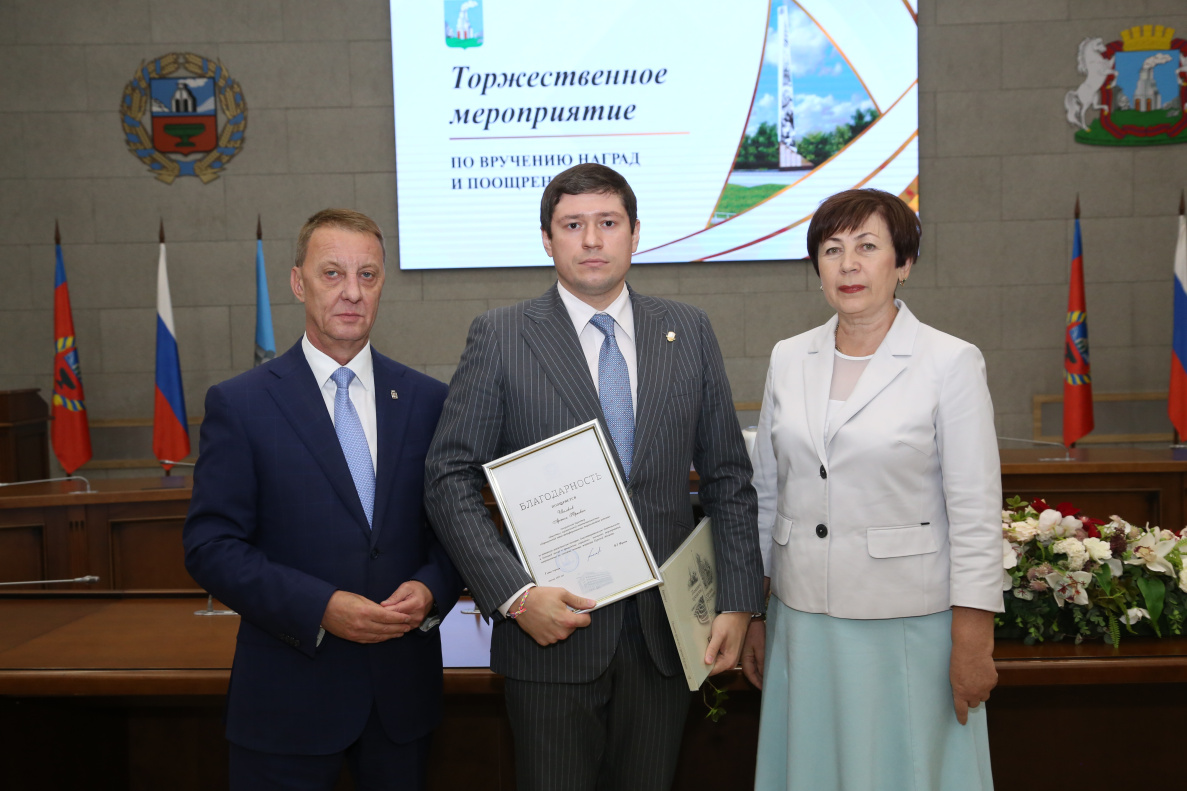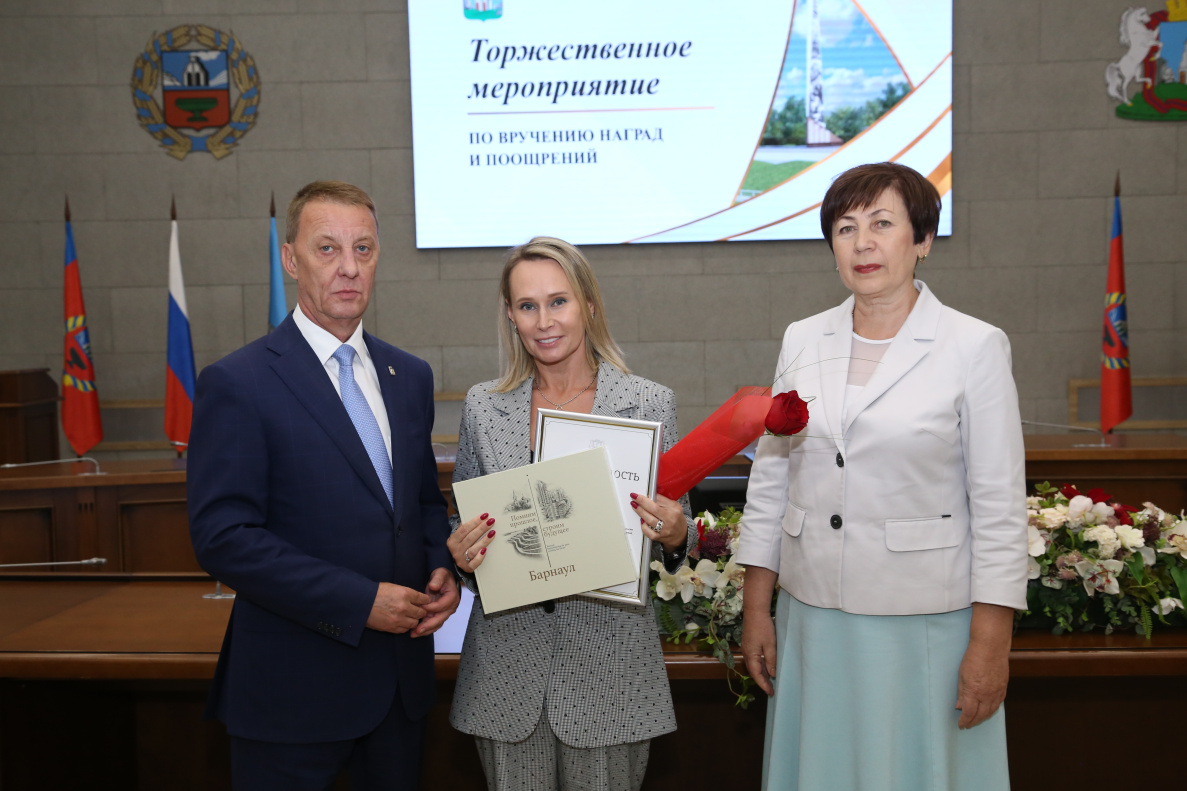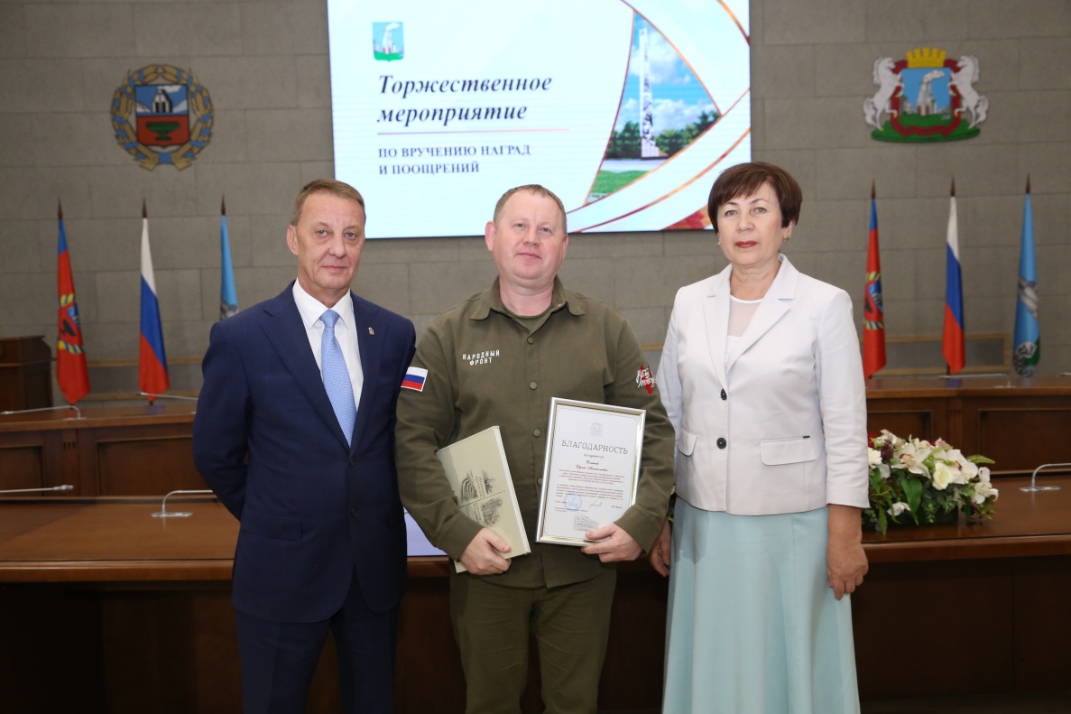 В преддверии Дня города в администрации Барнаула состоялось торжественное мероприятие по вручению наград семьям участников специальной военной операции, а также барнаульцам, которые внесли большой вклад в проведение мероприятий по оказанию гуманитарной помощи участникам СВО.
