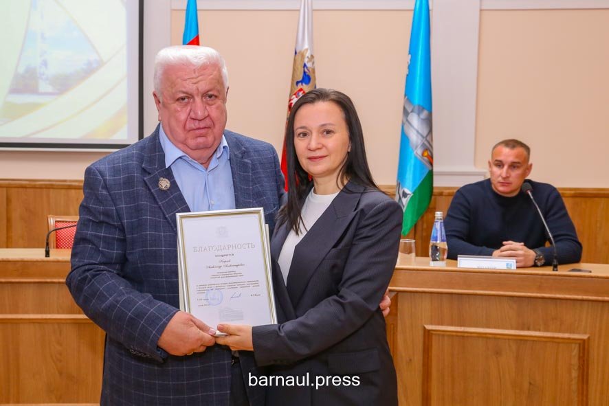 «Сегодня здесь присутствуют представители семей участников СВО, которые достойно проходят военную службу. От командира войсковой части, Правительства края, администрации города и всех барнаульцев примите слова благодарности за проявленные вашими родными самоотверженность и героизм при выполнении боевых задач. Также в зале находятся представители общественных организаций, предпринимательского сообщества и учреждений образования. Вы формируете гуманитарные грузы для наших бойцов, жителей приграничных и новых территорий, участвуете в обеспечении участников СВО военным обмундированием. Благодарю всех вас за отзывчивость, неравнодушие, искреннее желание помогать. Сегодня вы являетесь примером гражданской ответственности и преданности Родине».Благодарности и памятные адреса были вручены четырем семьям военнослужащих и тридцати барнаульцам.
