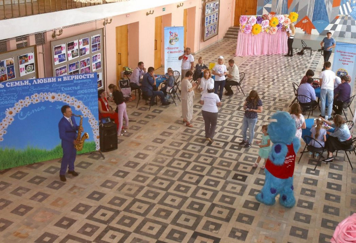 В фойе для семей была организована интерактивная площадка от партнеров и при участии волонтеров: семейная игротека от Краевого кризисного центра для мужчин и представителей барнаульских добровольческих отрядов отцов, визаж от Юлии Исаковой для мам, аквагрим для детей. Для участников были установлены тематические фотозоны, на которых работали фотографы-волонтеры Игорь Петров и Полина Фоминская. Все гости получат качественные семейные фотографии.