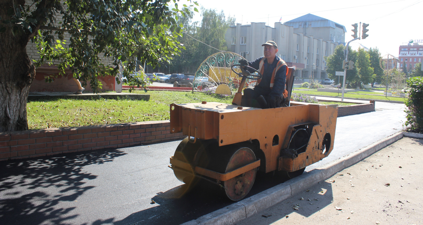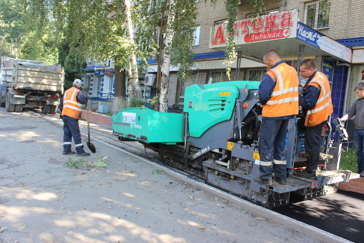 Сегодня, 14 августа, бригада ДЭУ Октябрьского района асфальтирует тротуар на проспекте Комсомольском вдоль дома № 110.