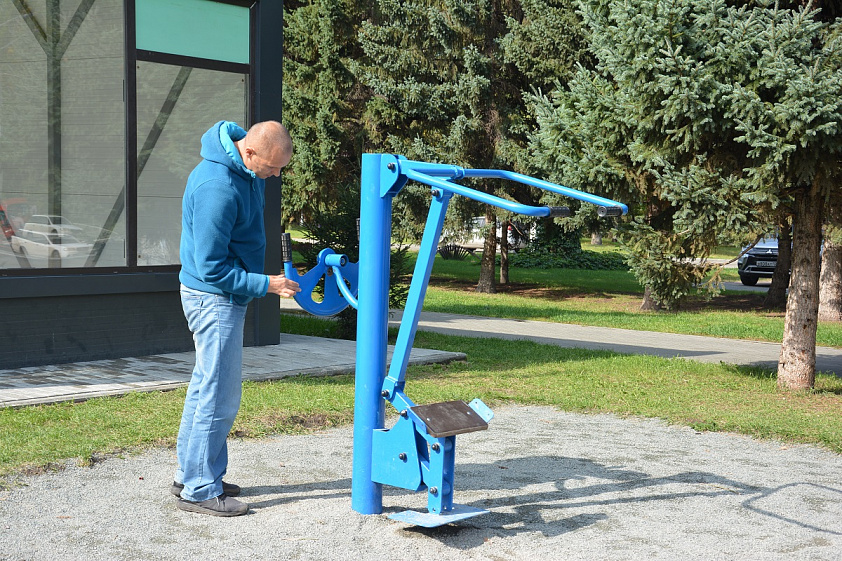 — Очень удобно, что тренажеры находятся в парковой зоне, здесь много многоэтажек. Ребятам с инвалидностью сюда удобно будет подъезжать и заниматься. Хорошо всё подобрано. Этот снаряд для тренировки плечевого комплекса, к примеру, будет очень удобен для колясочника — всё адаптировано по габаритам. Тот, что по соседству, — для развития пресса. Здесь более массивная и широкая доска, что подойдёт для человека с нарушениями опорно-двигательного аппарата, — поделился Сергей Вячеславович.