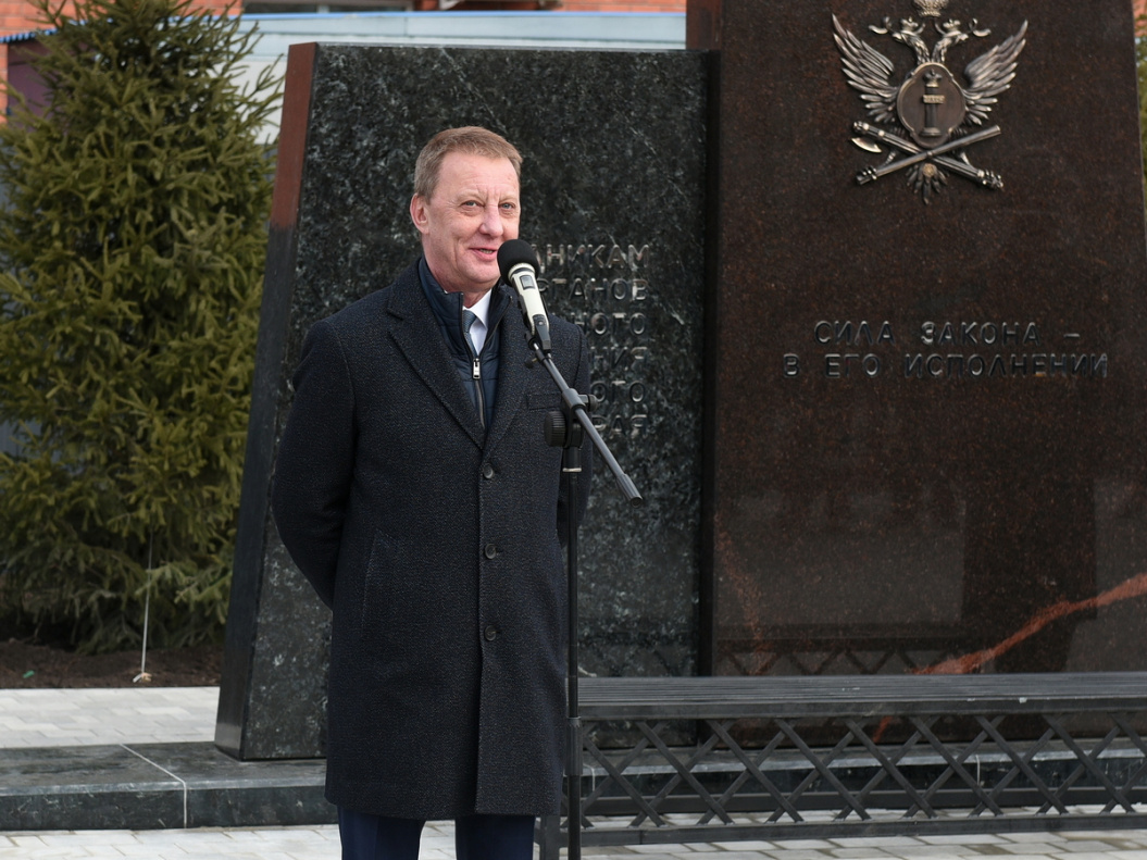 Дмитрий Лабутин поблагодарил Губернатора Виктора Томенко и главу города Вячеслава Франка за содействие в установке памятного знака, а также автора монумента Александра Деринга. Он заверил, что сквер с памятным знаком станет местом притяжения всех поколений сотрудников органов принудительного исполнения и местом для проведения торжественных мероприятий и присяг.