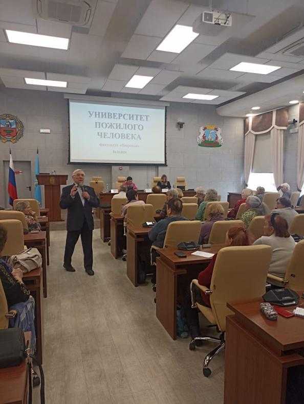 На первом занятии перед слушателями выступил доктор медицинских наук, профессор, депутат Алтайского краевого Законодательного собрания Александр Федорович Лазарев. Он рассказал «взрослым студентам» про онкологию, привел статистику онкологических заболеваний, рассказал о профилактике онкологических заболеваний.