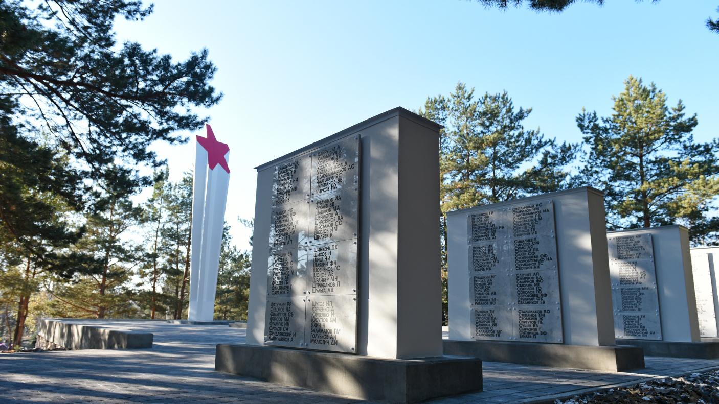 Мемориал состоит из трех объектов: 12-метровая стела со звездой и ряд из 6 стел, на которые нанесены фамилии 415 солдат, захороненных на кладбище, а также трехметровый куб с барельефом «Медсестра и солдат».