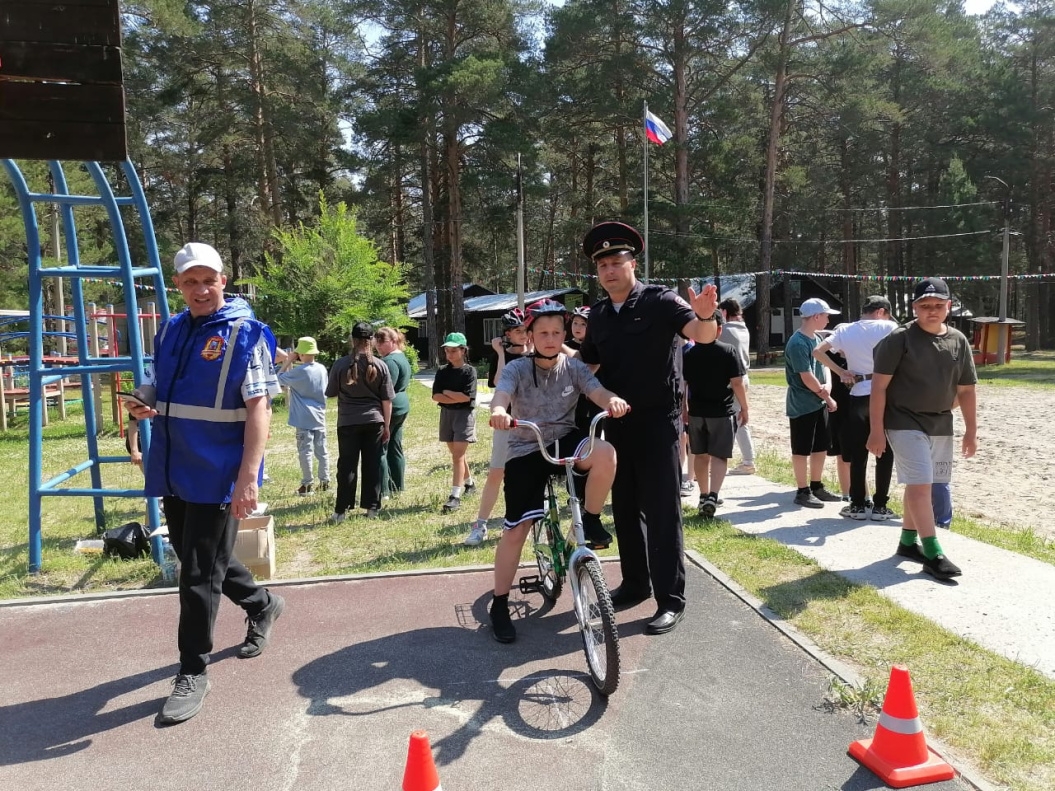 На протяжении профильной смены активное участие в судействе и проведении смены принимали сотрудники ГИБДД. На территории лагеря была организована мобильная площадка «Академия дорожной безопасности». Сотрудниками отделения пропаганды была проведена беседа «Правила Дорожного Движения — Наш Выбор!».