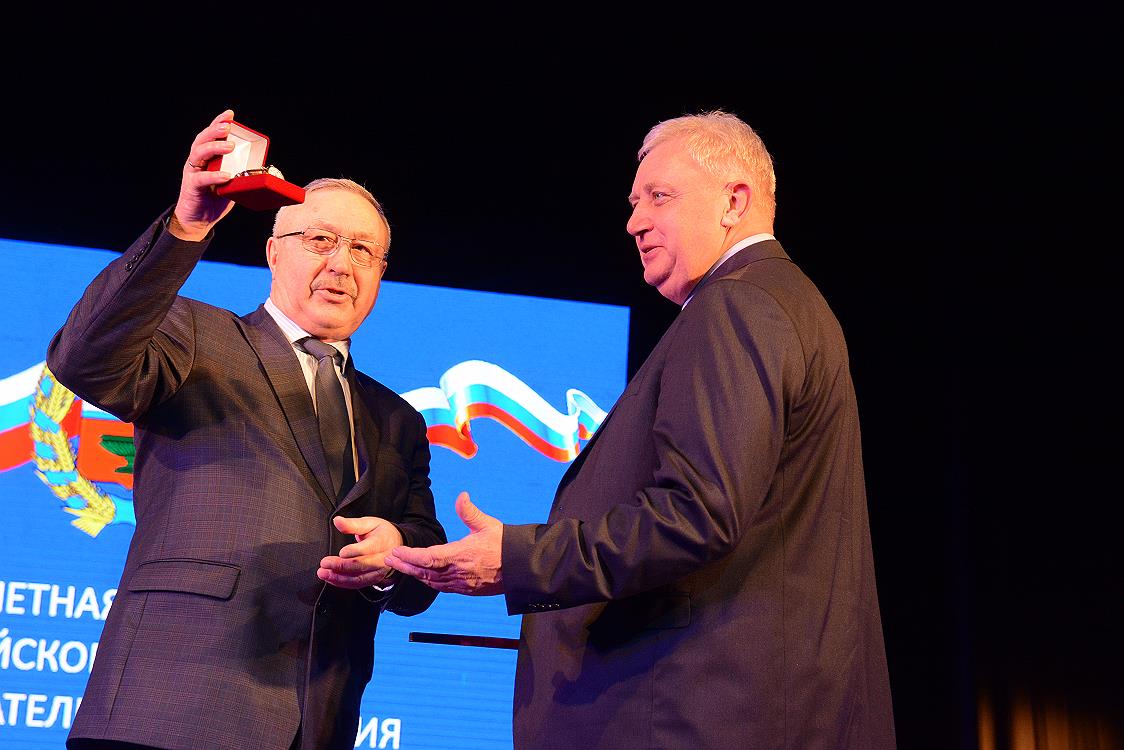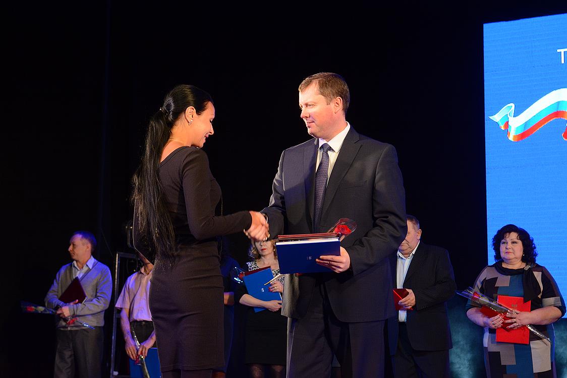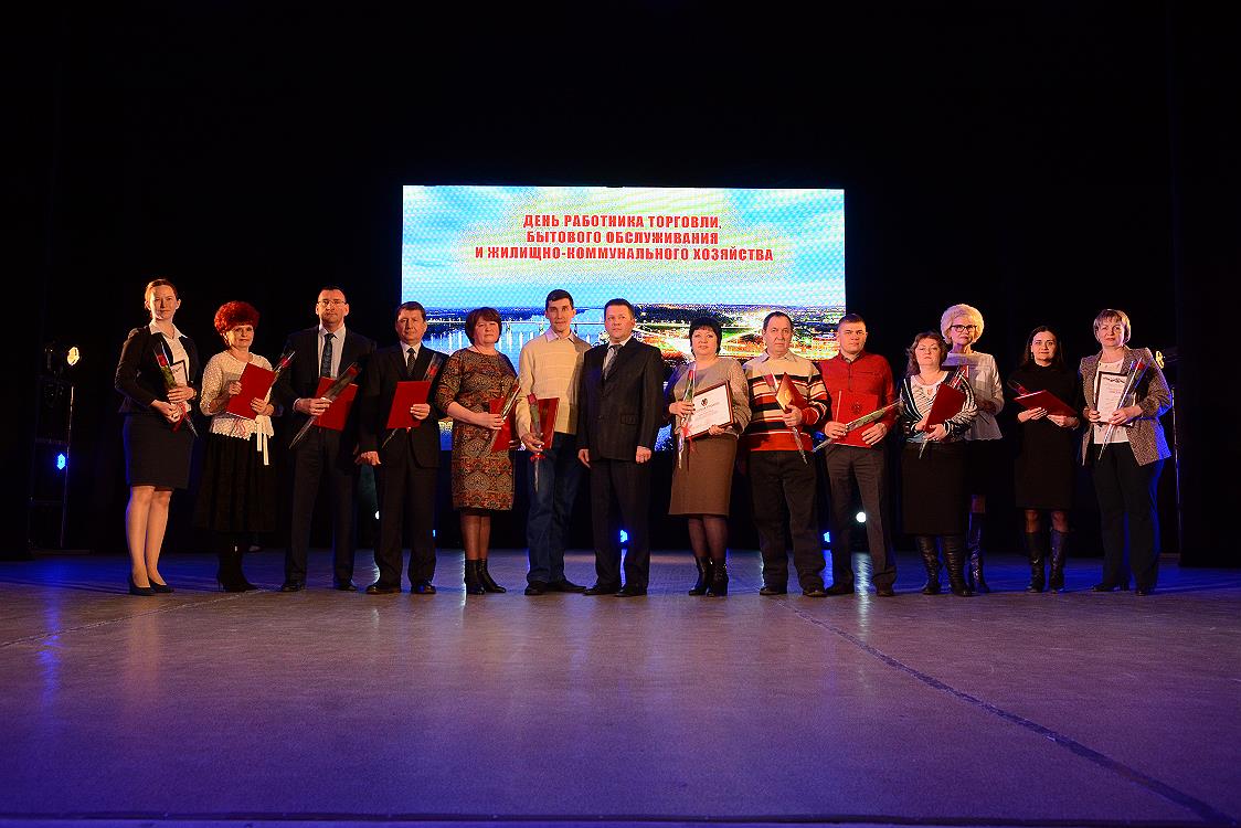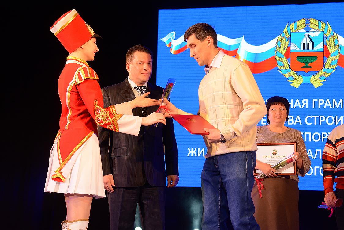 На сцене ДК лучшим и достойным сотрудникам сферы коммунальной службы и сферы обслуживания Барнаула вручили краевые и муниципальные награды.