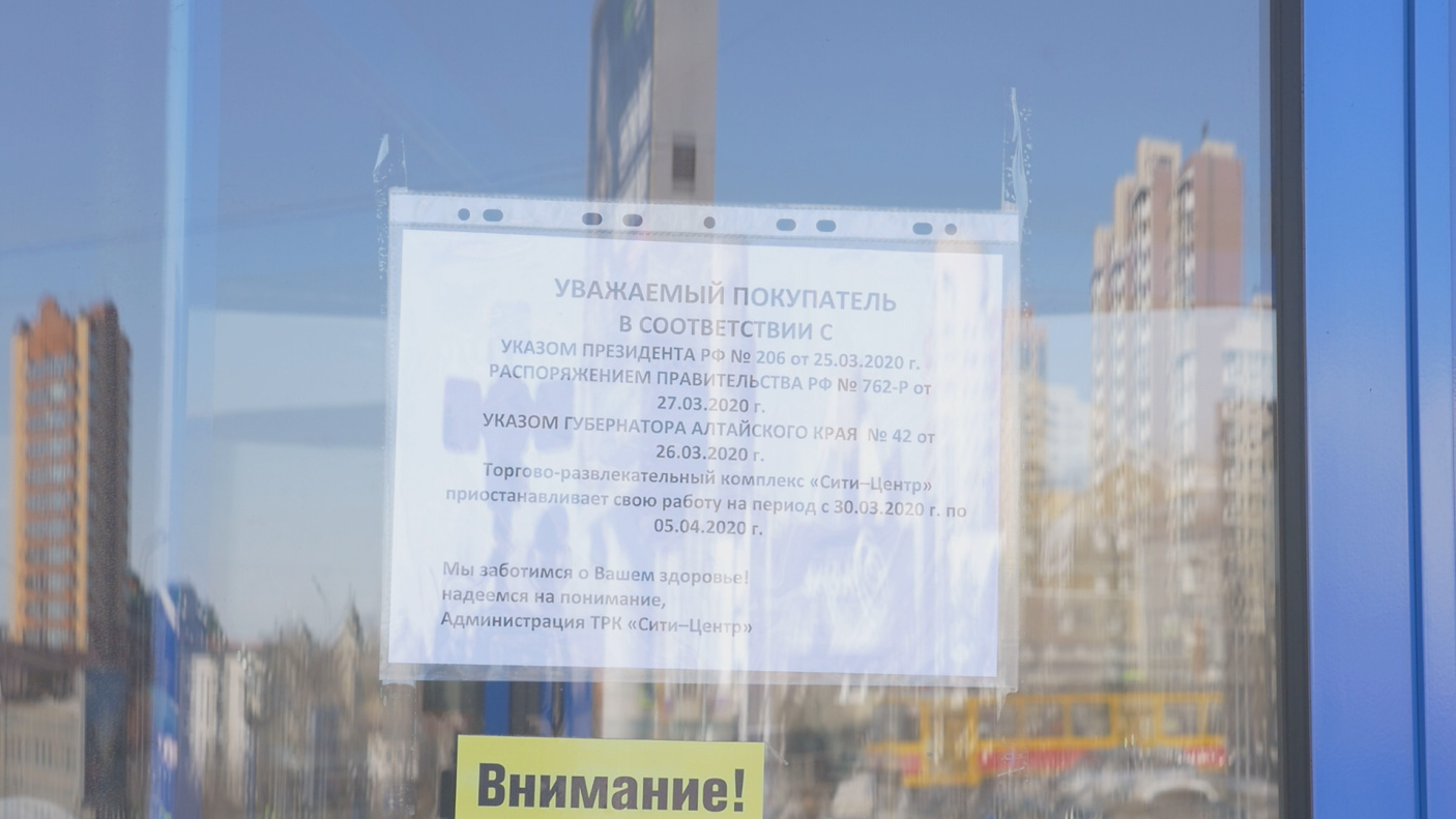 Администратор ТРЦ «Сити-Центр» Наталья Вахмянина пояснила, что в связи неблагополучной эпидемиологической ситуацией в стране и в Алтайском крае торговый центр закрыт до 5 апреля: «Во исполнение Указа Губернатора Алтайского края, наш торговый центр закрыт, работают только продовольственные отделы и аптека», - пояснила она.