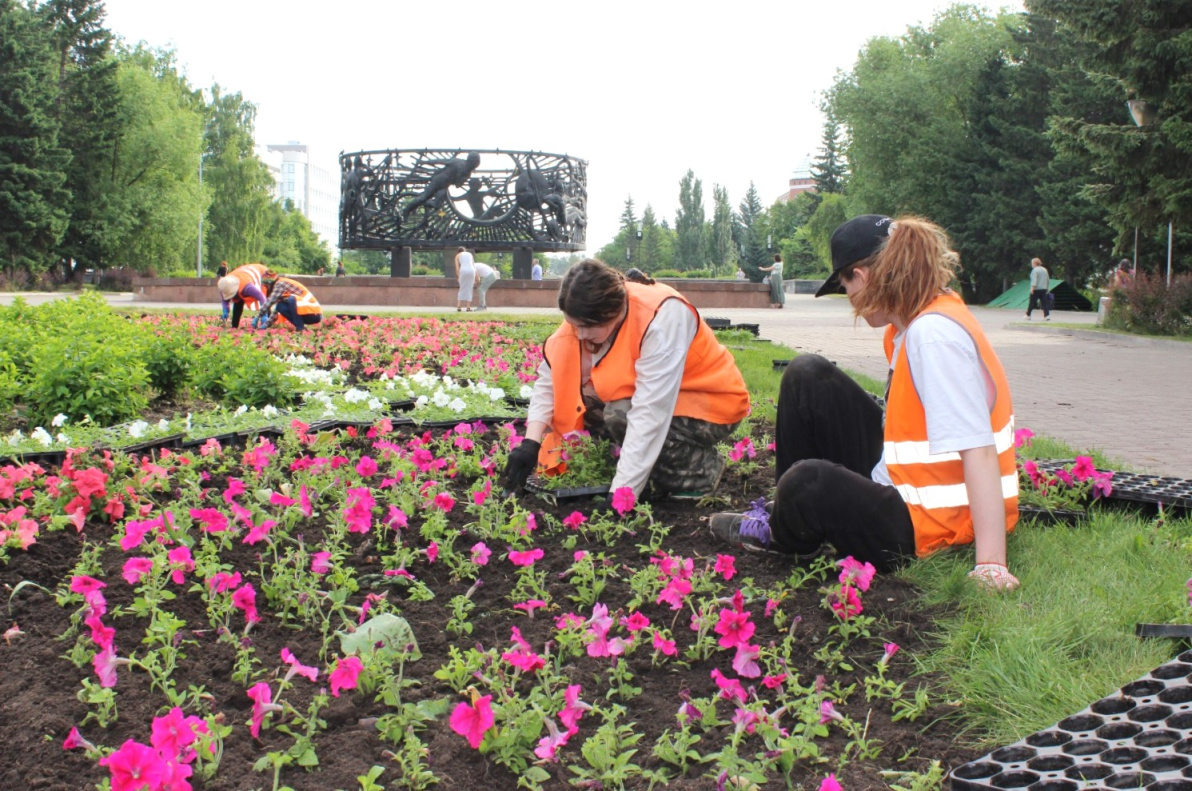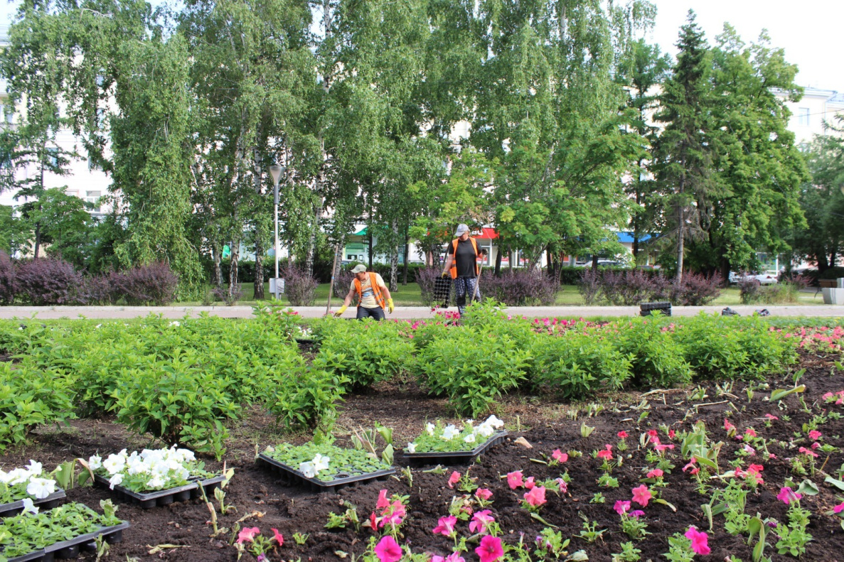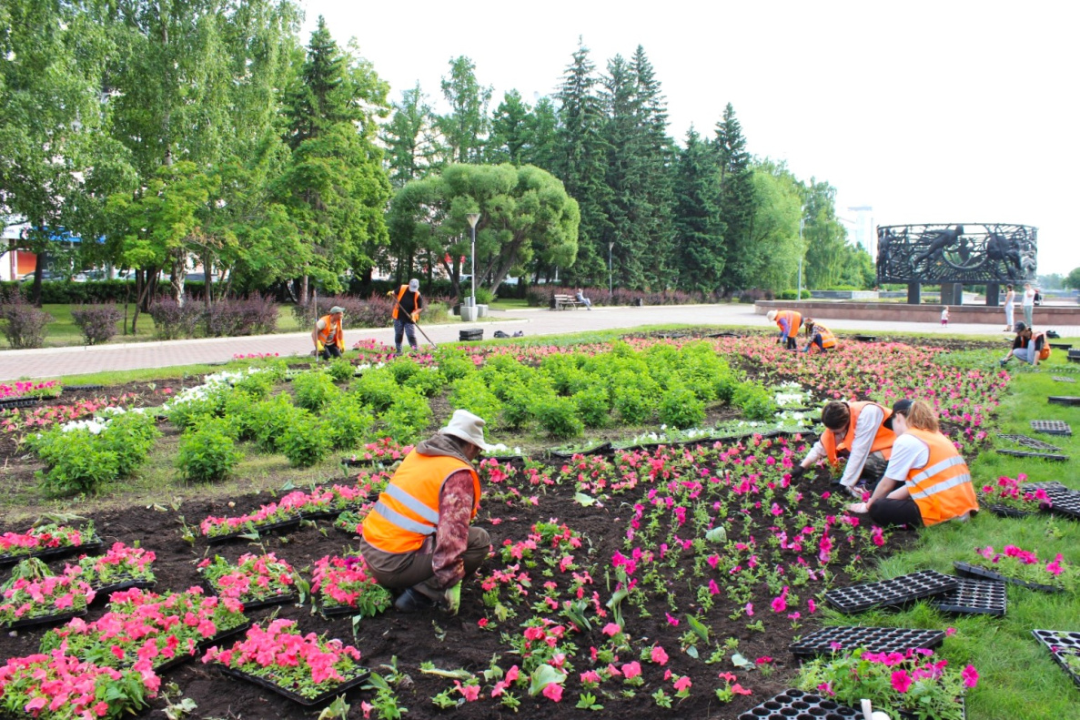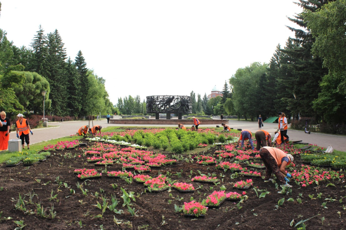 Сегодня, 5 июня, озеленители оформляют цветники и клумбы на Обском бульваре, высаживая яркие цветы различных видов.