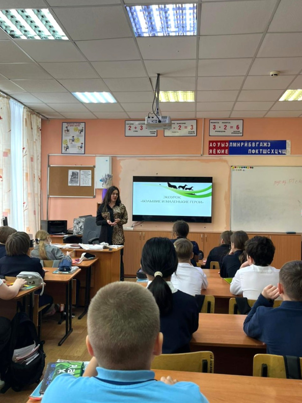 Так, накануне для учеников четвертых классов гимназии №69 имени Героя Советского Союза, генерал-майора И.В. Панфилова был проведен цикл экологических уроков «Большие и маленькие герои».