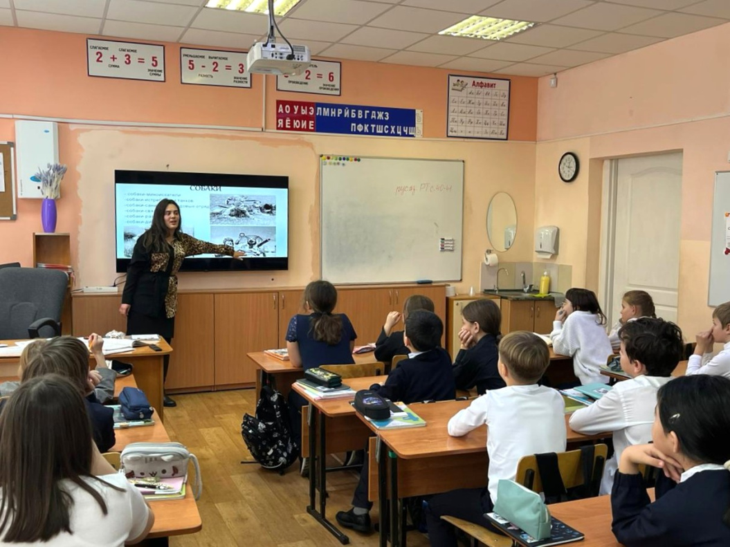 На экоуроках с четвероклассниками обсудили различных питомцев, ребятам рассказали истории о животных и птицах, которые, рискуя своими жизнями и проявляя самоотверженность, спасали раненых, находили мины, доставляли ценные сведения и участвовали в боевых действиях во время Великой Отечественной войны.