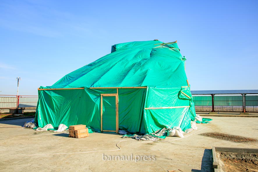 В Барнауле продолжается установка стелы «Город трудовой доблести»