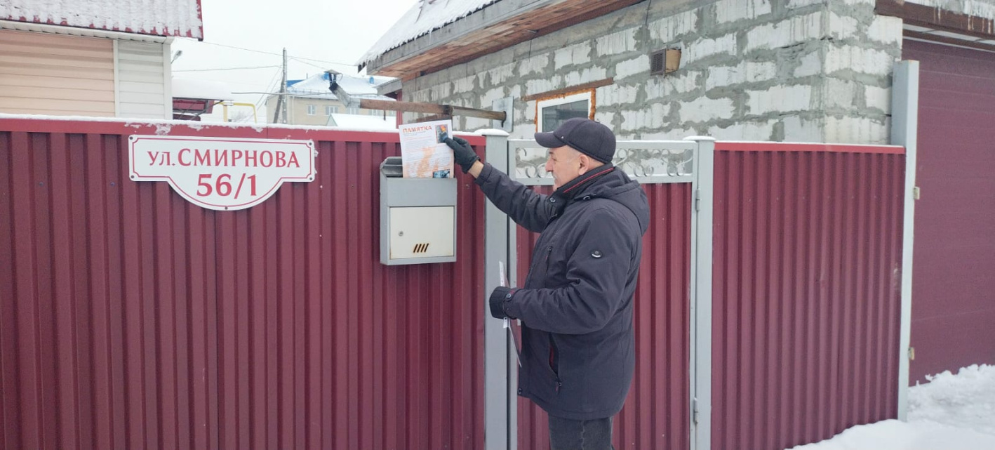 С жителями проводились беседы по соблюдению правил пожарной безопасности при эксплуатации печного отопления и газового оборудования. Людям вручили памятки на противопожарную тематику с номерами вызова экстренных служб, часть листовок разложили в почтовые ящики.