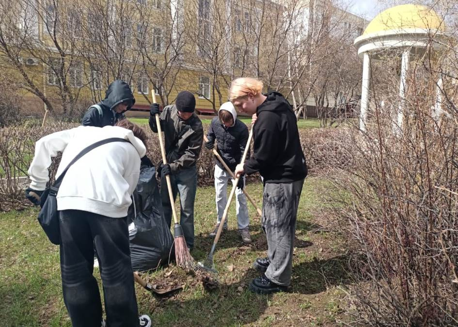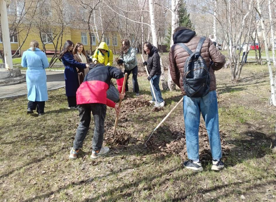 Студенты Алтайского промышленно-экономического колледжа убирали прошлогоднюю листву и мусор на аллее по улице Смирнова, а также на пересечении улиц 80-й Гвардейской Дивизии и Северо-Западной.