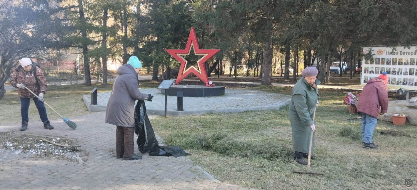 В п. Научный Городок муниципальные служащие совместно с членами Совета ветеранов навели порядок в зелёной зоне посёлка.