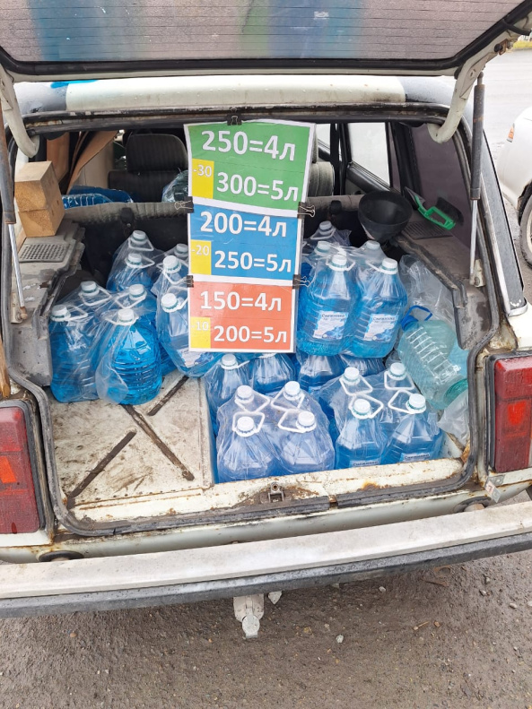 Комитетом по развитию предпринимательства, потребительскому рынку и вопросам труда проведен рейд по пресечению несакционированной торговли стеклоомывающей жидкостью (незамерзайки) на территории города.