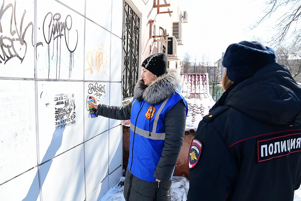 Жители города охотно брали листовки, с этим этапом акции организаторы справились быстро и перешли ко второму – закрашиванию надписей с информацией об онлайн-магазинах по распространению запрещенных веществ либо о возможности заработать наркокурьером. Такие периодически появляются на фасадах зданий, гаражей и других сооружений.