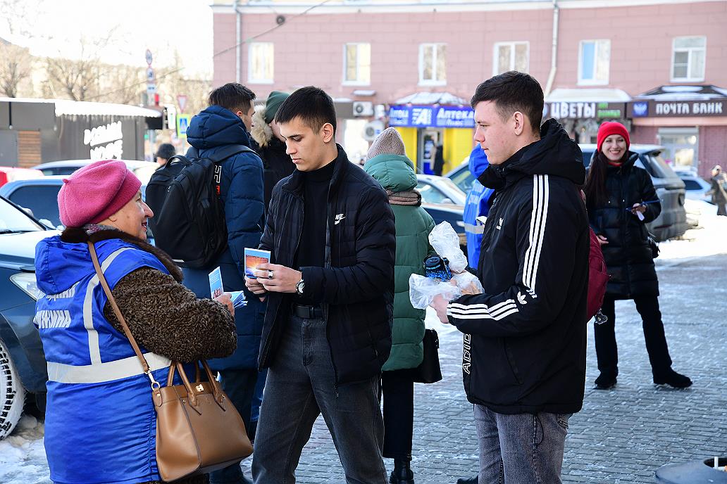 Было принято решение выйти с раздачей листовок в самый центр города – у ТЦ «ЦУМ» – и не спроста. Главной целевой аудиторией выступает молодежь, а именно здесь их наибольшая проходимость, так как рядом два крупнейших вуза – Алтайский государственный университет и технический университет имени И.И. Ползунова.