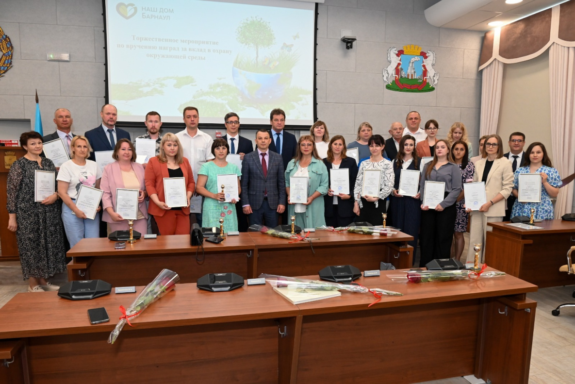 Сегодня, 4 июня, в преддверии Всемирного дня охраны окружающей среды в администрации города Барнаула состоялась торжественная церемония по вручению наград победителям городского конкурса «За вклад в защиту окружающей среды города Барнаула» и награждение, приуроченное к профессиональному празднику - Дню эколога.