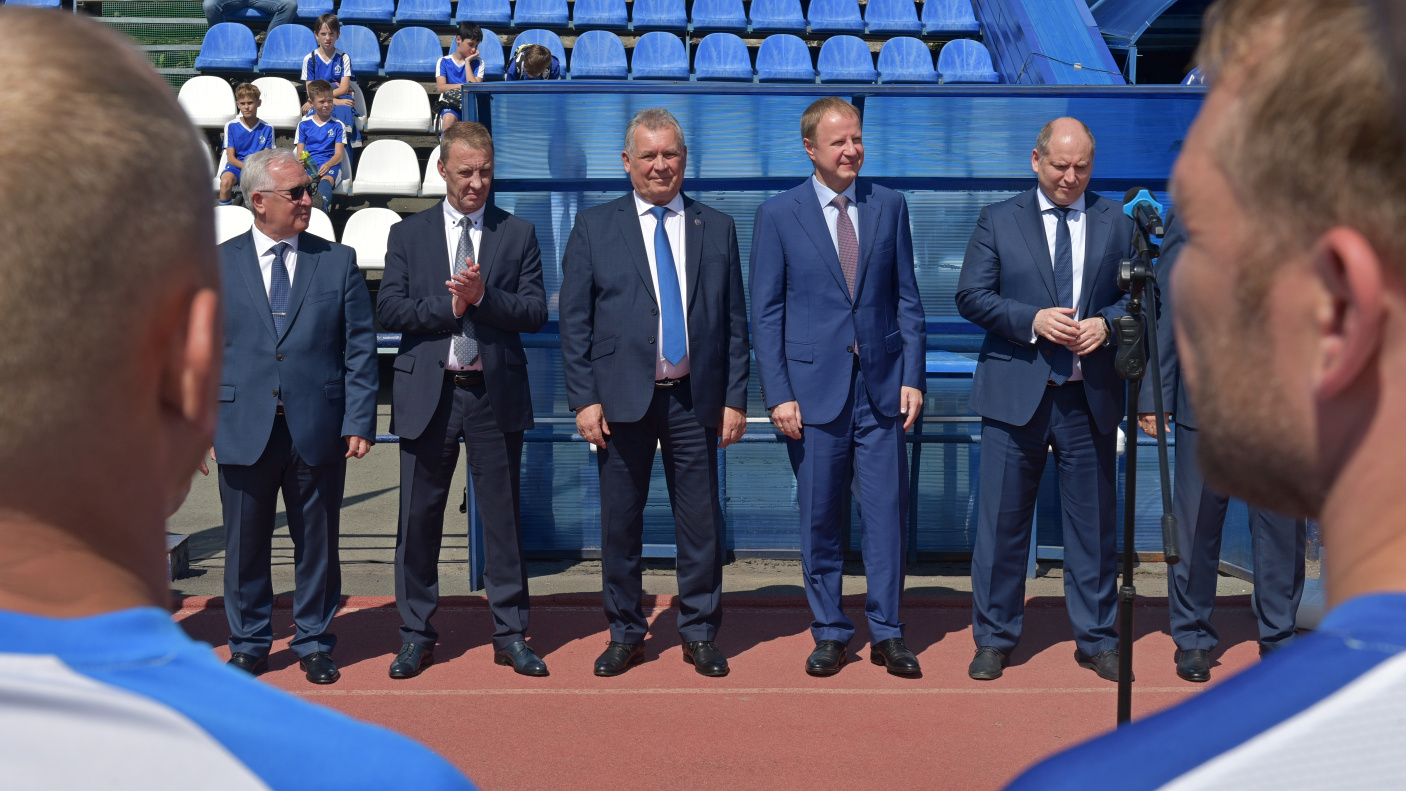 Футболистов, болельщиков и гостей приветствовал губернатор края Виктор Томенко: