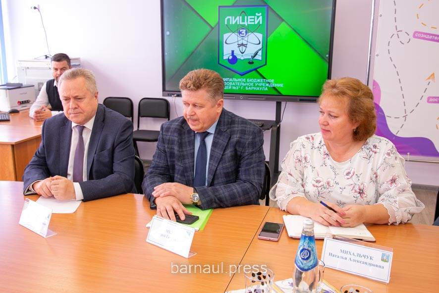 Образование и наукаНа базе лицея №3 прошло заседание Совета директоров муниципальных общеобразовательных организаций города Барнаула. В нем приняли участие глава города Вячеслав Франк, заместитель главы администрации города по социальной политике Александр Артемов, руководители и специалисты комитета по образованию.