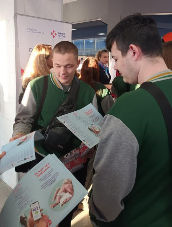 Сотрудники комитета по делам молодежи администрации города и студенты – волонтеры Барнаульского лицея железнодорожного транспорта раздавали информационные листовки и памятки по противодействию употребления, хранения и распространения наркотических средств, профилактике экстремизма и идеологии терроризма, а также недопустимости совершения диверсий. Во время раздачи информационного материала студенты-волонтеры призывали участников ярмарки не совершать необдуманных действий и не поддаваться на уловки вербовщиков.